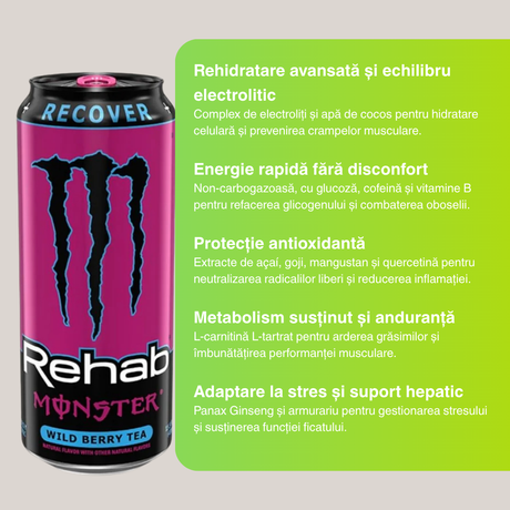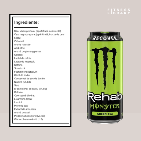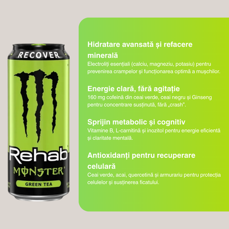 Monster Rehab Tea + Peach (rehidratare, revitalizare, energie) – 500ml / 1 porție | MONSTER ENERGY