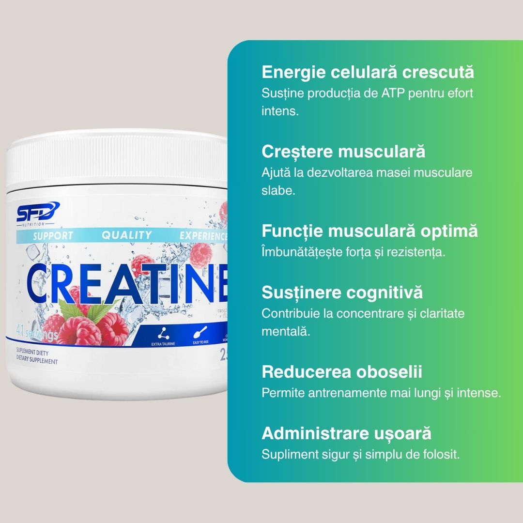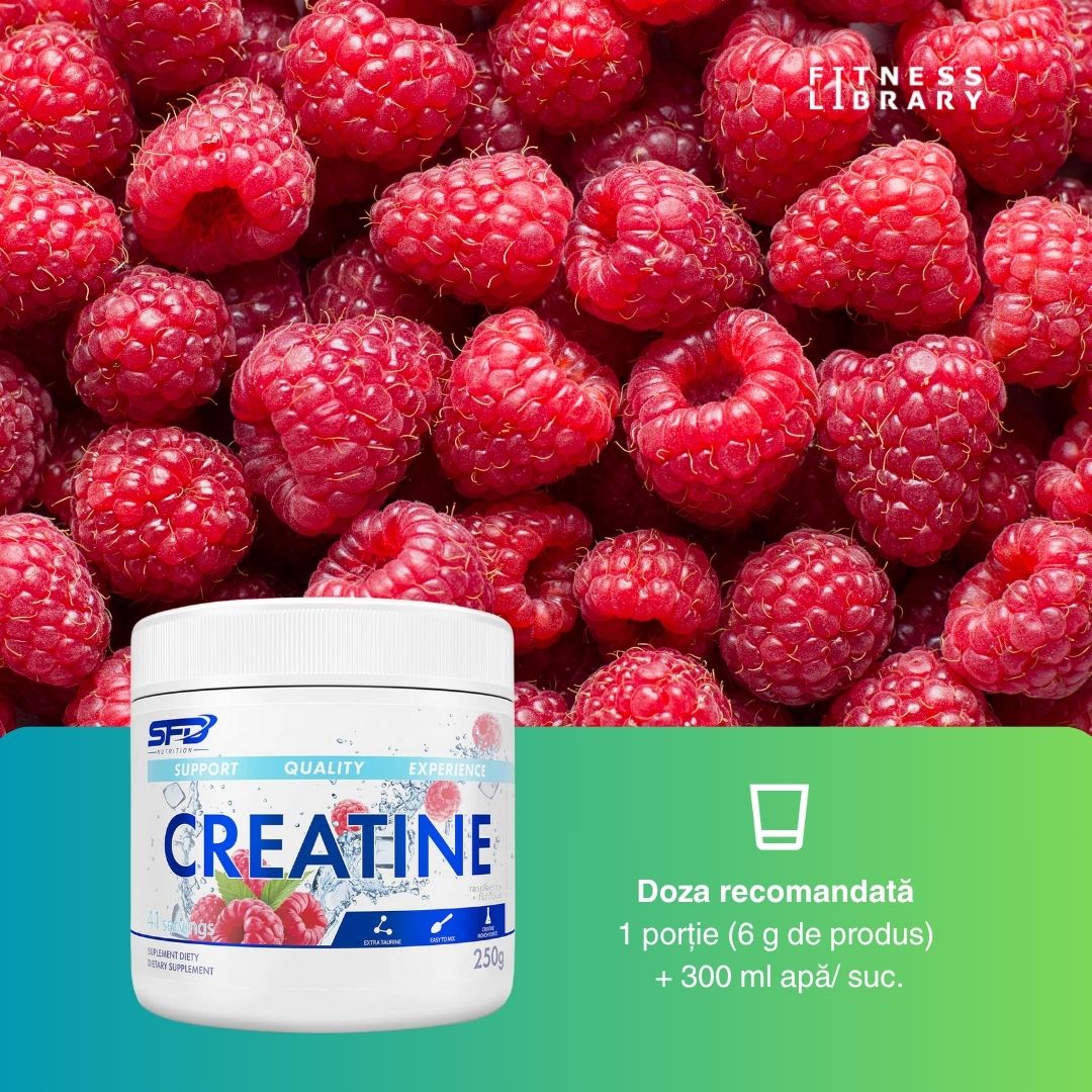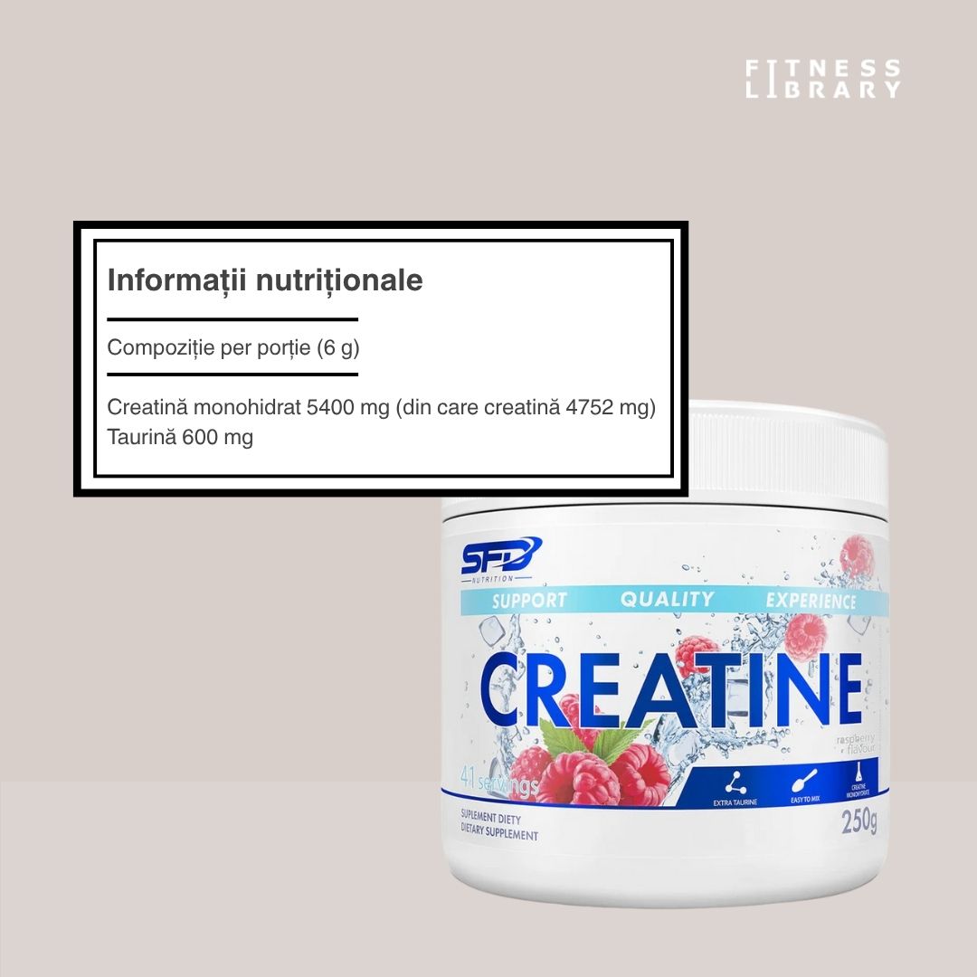 Creatină monohidrată (forță explozivă, creștere musculară, cu extra taurină) – 250g / 41 porții | SFD NUTRITION