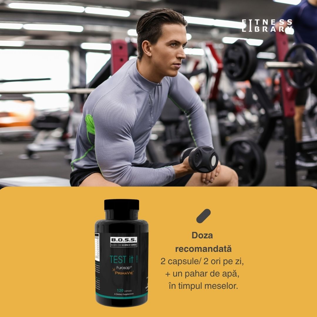 Amplificatorul natural de testosteron TEST it! de la VITABOLIC, prezentat într-un flacon de 120 de capsule ce asigură 30 de porții complete, nu este un simplu supliment, ci o platformă biochimică avansată, proiectată pentru a revitaliza și optimiza sănătatea masculină. Această formulă de elită transcende amestecurile de plante convenționale, integrând extracte brevetate cu eficiență dovedită clinic, precum Furosap® și PrimaVie®, alături de adaptogeni puternici și cofactori minerali esențiali. Obiectivul său este clar și multidimensional: susținerea producției endogene de testosteron, amplificarea capacității energetice la nivel celular, modularea răspunsului la stres și, în final, deblocarea unui nou nivel de performanță fizică și mentală.