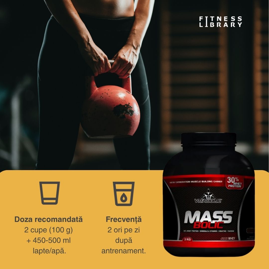 Gainer pentru masă musculară MassBolic (creștere musculară rapidă, recuperare avansată) – 3kg / 30 porții | VITABOLIC